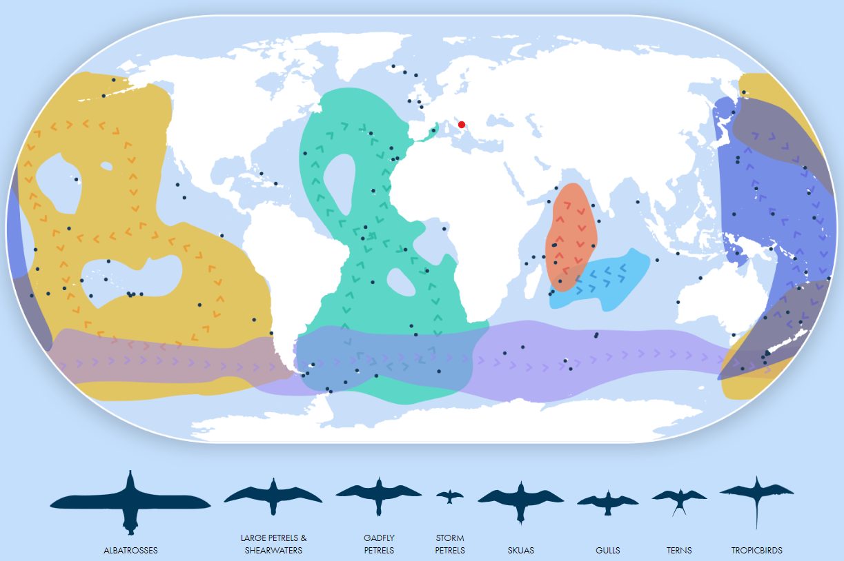Marine flyways are the major routes migratory seabirds regularly use to travel between their breeding and non-breeding areas. Click to explore the marine flyways.